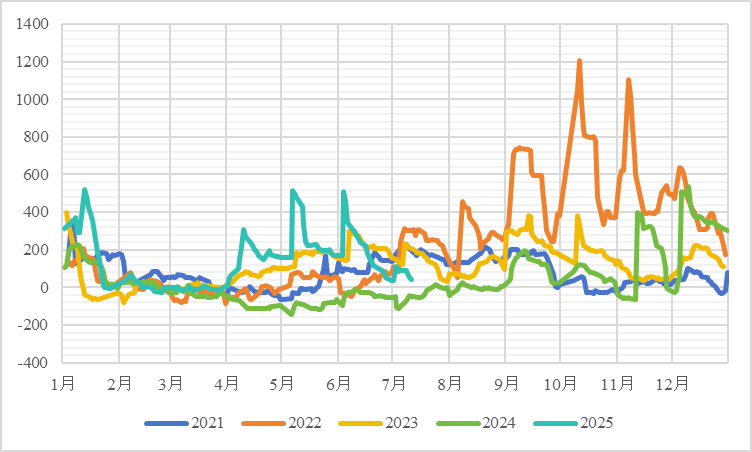 图6 我国锌锭现货升贴水(单位:元/吨)