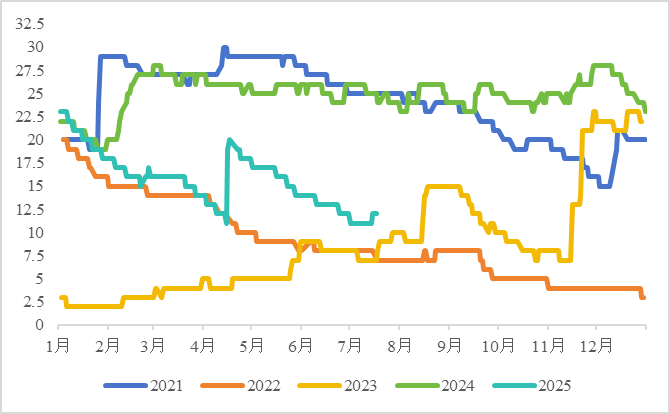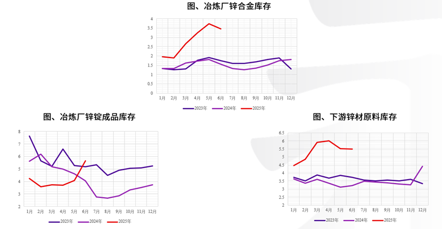 国内而言,在矿端利润转移至锭端利润的周期中,在需求没有较大弹性的情况下,随着新增锌锭产能的释放,锌锭累库是中长期较为明确的趋势。但由于近年来厂提以及锌合金转化比例明显提高,当前社会显性库存存在一定的失真。一方面,锌合金的转化与铝水比例提高相似,是较为明确的技术趋势,这将导致部分原有锭的库存将转化为冶炼厂及其他环节的锌合金库存。另一方面,冶炼厂直发下游的厂提行为逐渐增多,冶炼端由于处于利润修复周期的中后期,冶炼厂整体处于重建并扩充自身库存阶段,下游由于一二季度抢装需要较多囤积下游库存,因此冶炼厂环节的成品库存和下游的原料库存都存在不同程度的累积,社会库存隐性化程度加剧。这一情况与2023年的锌锭社会库存变化上有一定的相似之处,彼时由于疫情结束后全行业重建库存、较多冶炼厂扩建产能,锌锭社会库存处于阶段性低位且全年不见明显累库,累库加速存在一定时间的时滞,直至2024年上半年才逐渐兑现。因此,从周期上而言,锌锭社会库存整体累库趋势不变,但累库加速处于矿自锭利润再分配环节的最后阶段,各环节隐性库存的增长影响一定程度上限制了显性库存的高度。短期来说,在黑色反内卷情绪的影响下,锌下游存在超季节性补库的正反馈行为,使得近端累库速度或慢于预期。若政策主导下黑色的反弹持续性较强,锌累库幅度可能仍较有限;若持续性一般,超季节性补库可能会透支原有金九银十的补库量,极端情况下可能出现“旺季累库”的可能。