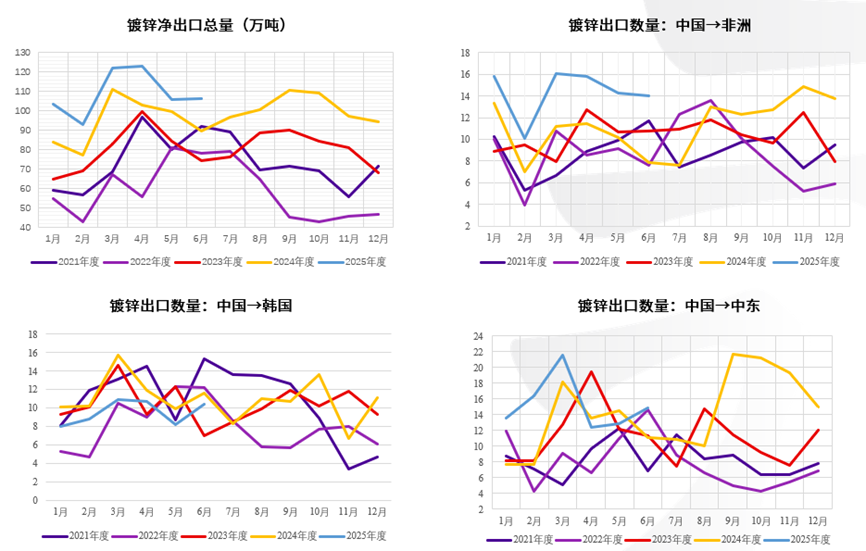 尽管现实面库存高度有限,但锌中长期基本面宽松的趋势不变。由于国内新建冶炼产能的释放,冶炼端进入检修季减量减少、或转为小幅增量。进入7月,国内下游各环节开工率整体平稳,呈现消费淡季的走势,各地区的现货升贴水都出现不同程度的下滑,部分地区已出现贴水出货的情况,近期随着政策引导下的正反馈可能存在一定反复。中长期来看,供应端海外锌矿增量有较强的持续性,如Oz矿基本在俄罗斯进入我国的锌矿进口增量上已有反馈,国内下半年锭端新产能投产后会缓慢传导至社会库存上。需求端的韧性主要仍来自于镀锌出口,镀锌上半年出口总量同比增长16%,主要增长点来自于非洲及中东的基建高需求国家,韩国、越南等转运国的出口量震荡偏弱。中长期维度供需格局变化不大,呈现中性转宽松趋势。