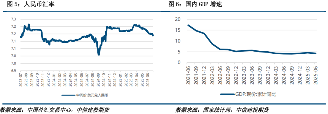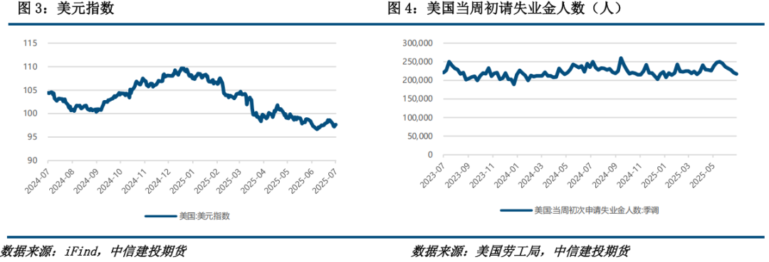 美国方面,经济数据偏弱,货币政策独立性的前景面临扰动。7月标普全球制造业PMI初值降至49.5,创2024年12月以来新低,但服务业PMI初值跃升至55.2,推动综合PMI初值达54.6,均为2024年12月以来新高。同时,上周初请失业金人数连续第六周下降4000人至21.7万人,创2022年以来最长连降周期。美联储方面,7月24日美国总统特朗普罕见造访美联储总部,当面要求主席鲍威尔降息,主张将利率从4.25%-4.5%降至1%以节省政府再融资成本,并质疑美联储大楼翻修费用超31亿美元。同时,特朗普暗示不会解雇鲍威尔,但透露已考虑下任主席人选。