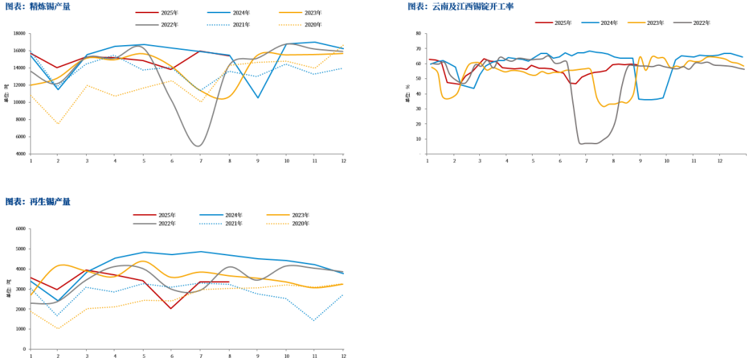 截至目前,国内再生锡产量累计约为2.64万吨,同比去年减少0.68万吨,再生锡供应显著下滑,处于历史同期偏低水平。