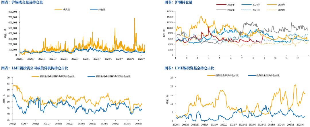 LME投资公司及信贷机构持仓整体有所维持,多头持仓依然占优,目前上升至47.4%,空头持仓维持于43%。