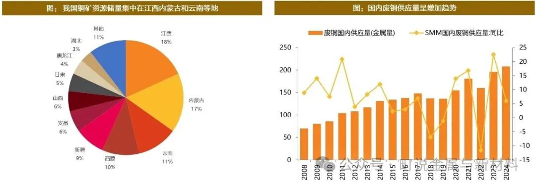(2)新建矿铜冶炼项目原则上需配套相应比例的权益铜精矿产能。我国铜矿资源集中在江西、内蒙古和云南等地。