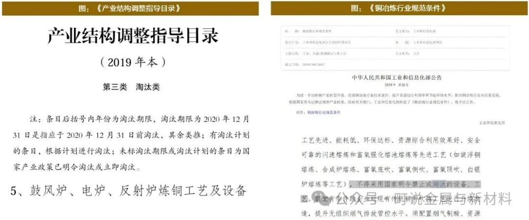 (1)《产业结构调整指导目录》(2019年修订),其中淘汰类:明确列出鼓风炉、反射炉、电炉等工艺,为国家产业政策已明令淘汰或立即淘汰。