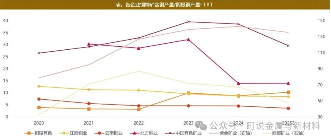 资料来源:铜陵有色等公司公告,天风证券研究所 备注1:中国有色矿业计算的为矿铜/(阴极铜+粗铜/阳极铜)的比例