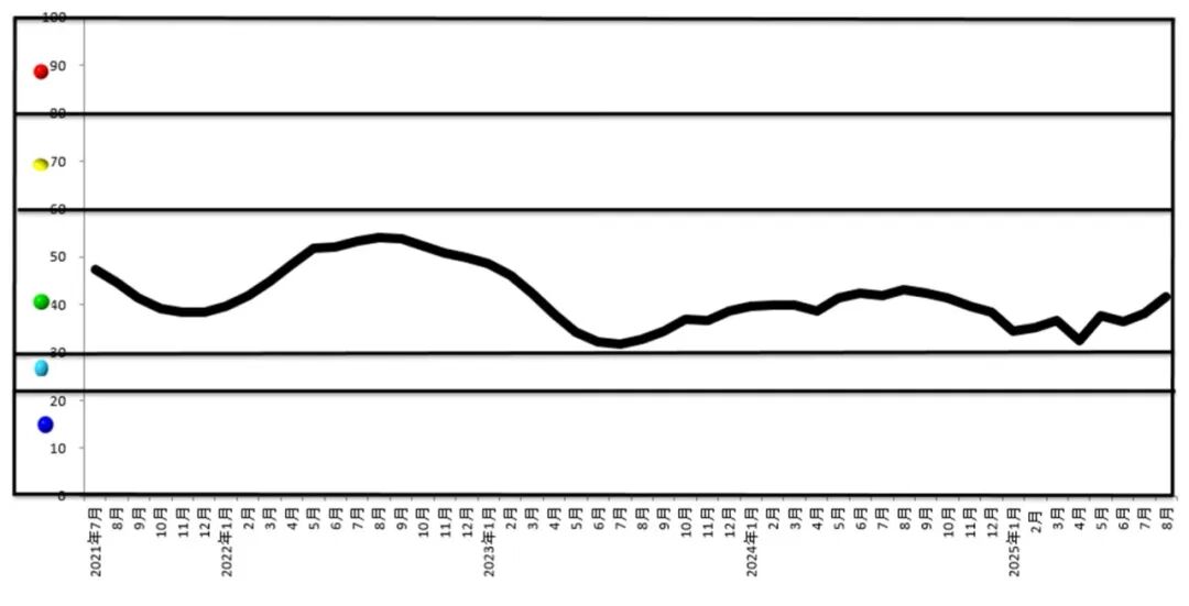二是M2(货币供应量)保持稳定。货币供应量指数为45.7,较7月份下降0.1个点,整体保持稳定。宽松的货币政策环境为铅锌产业提供了稳定的流动性支持,有利于产业中长期发展。