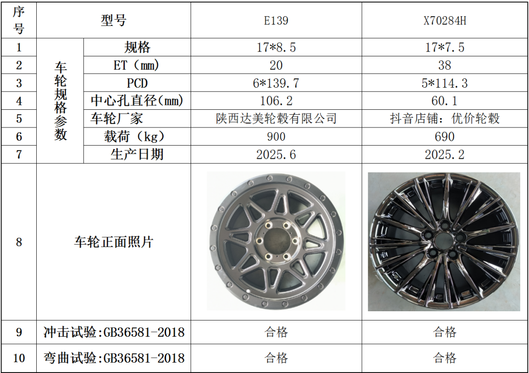 2025年8月铝合金车轮质量抽查检测报告