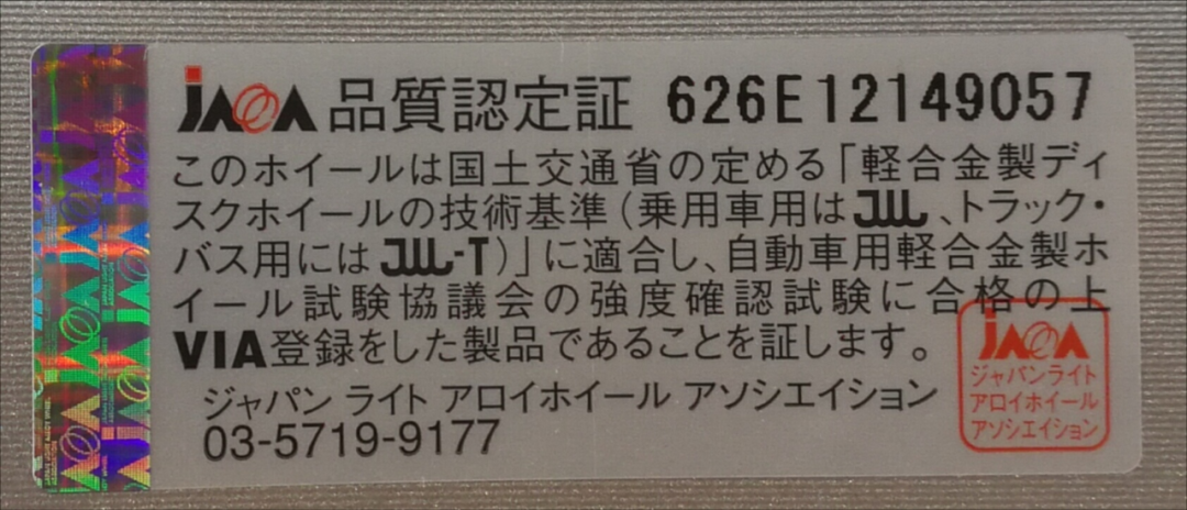 第四,车轮是汽车上非常重要的安全件,选购车轮一定购买质量有保障的车轮,有品牌影响力的车轮,符合国家强制标准GB36581-2018 《汽车车轮安全性能要求及试验方法》的车轮,铝车轮质量协会借鉴JAWA日本轻合金车轮协会成功做法,在日本零售的铝合金车轮90%以上都张贴有《JAWA品质认定证》标签,为此建议在中国零售市场请购买粘贴有《CAW质量认可证》标签的车轮产品。