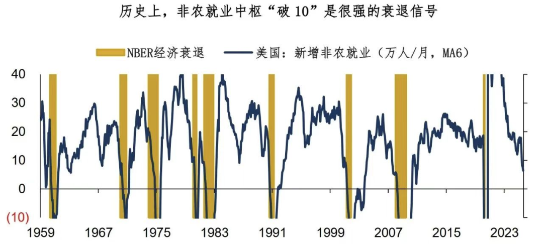 随着8月非农就业再一次爆冷,海外市场也来到了关键路口。无论美元、美债、联储降息等话题,都开始围绕一个核心问题:美国会经济会衰退吗?过去几年,海外市场曾经数次炒作过“美国经济衰退”,但那更多是基于特定事件冲击(比如 “萨姆法则”、懂王关税等),而非农就业中枢一直处于10-30万的健康水平。但从今年下半年来,美国新增非农就业已经连续4个月低于10万,新增就业中枢也降至疫情后的最低水平。
