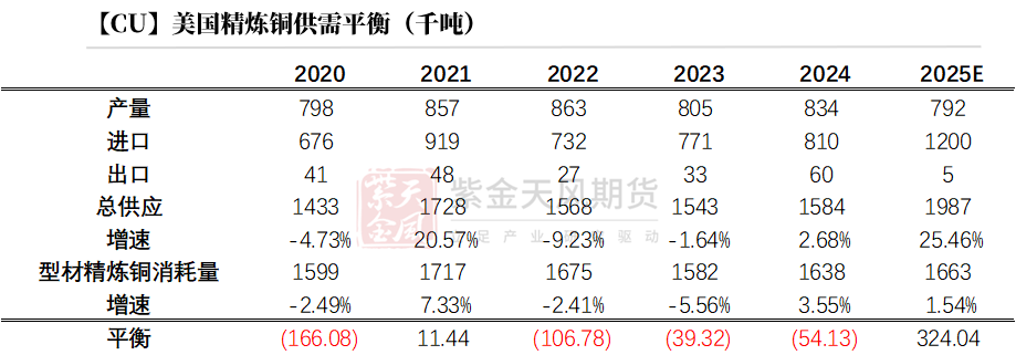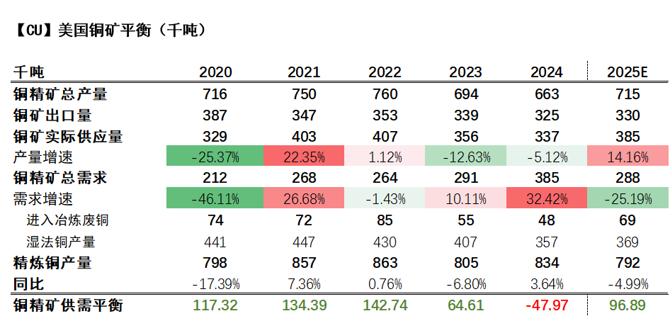 平衡层面,预计美国2025年的矿石过剩约为9.68万吨。
