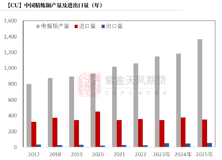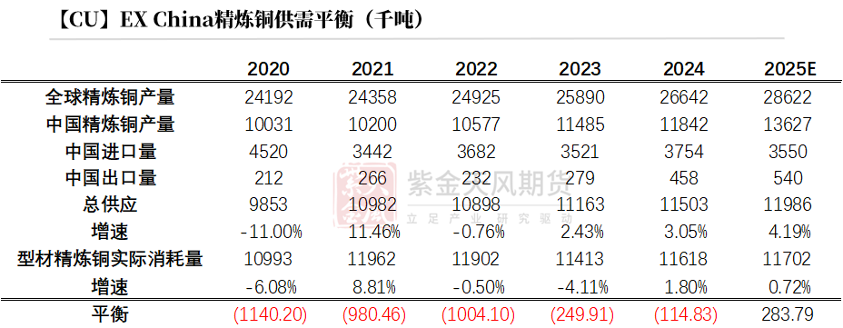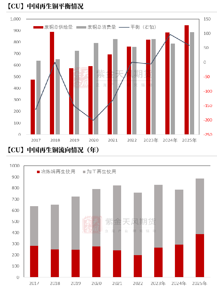 基于平衡表而言,2025年精炼铜过剩42.72万吨,铜元素供应短缺26.6万吨。