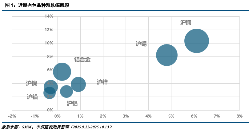 以9月22日铝合金仓单注册开放作为时间切分点,至今的10个交易日内有色品种上涨居多,其中铜与锡的涨幅及振幅排列前二,而振幅第三则是铝合金。按照我们在再铸铝途定价篇的复盘,过往宏观因素占主导时,沪铝绝对涨/跌幅均高于铝合金,显然近段时间的行情是有悖于历史经验的。