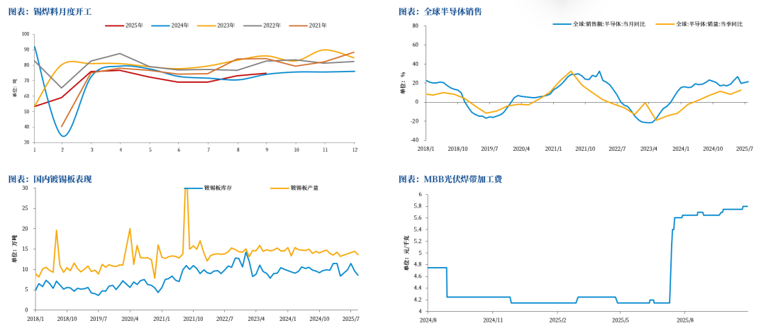 锡焊料开工率小幅回升,截至9月,焊料企业开工率约为74.8%,环比增加1.6%,整体仍处于近五年来偏低水平;