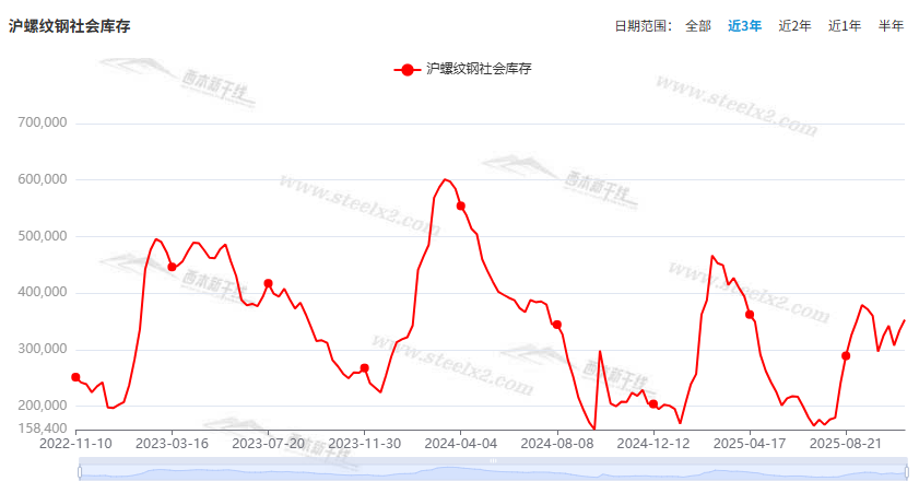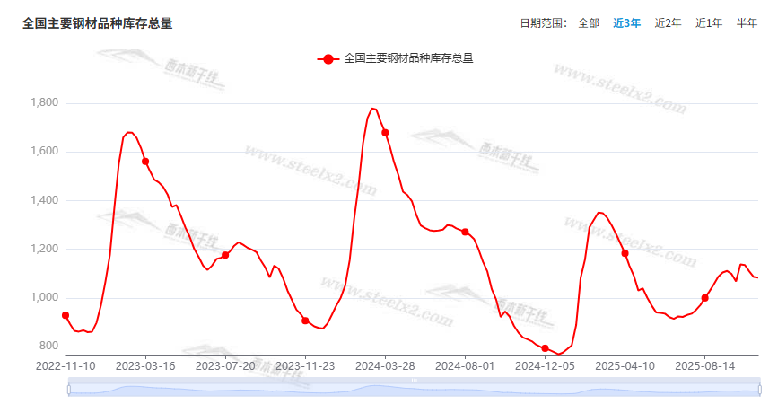中钢协:2025年10月下旬,重点统计钢铁企业共生产粗钢1999万吨,平均日产181.7万吨,日产环比下降9.8%;生铁1918万吨,平均日产174.4万吨,日产环比下降5.8%;钢材2194万吨,平均日产199.5万吨,日产环比增长0.9%。10月下旬,重点统计钢铁企业钢材库存量1463万吨,环比上一旬减少195万吨,下降11.8%;比年初增加226万吨,增长18.3%;比上月同旬减少4万吨,下降0.3%;比去年同旬增加99万吨,增长7.3%,比前年同旬增加86万吨,增长6.3%。