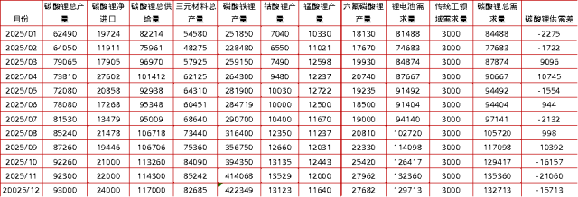 表 1:碳酸锂供需平衡表