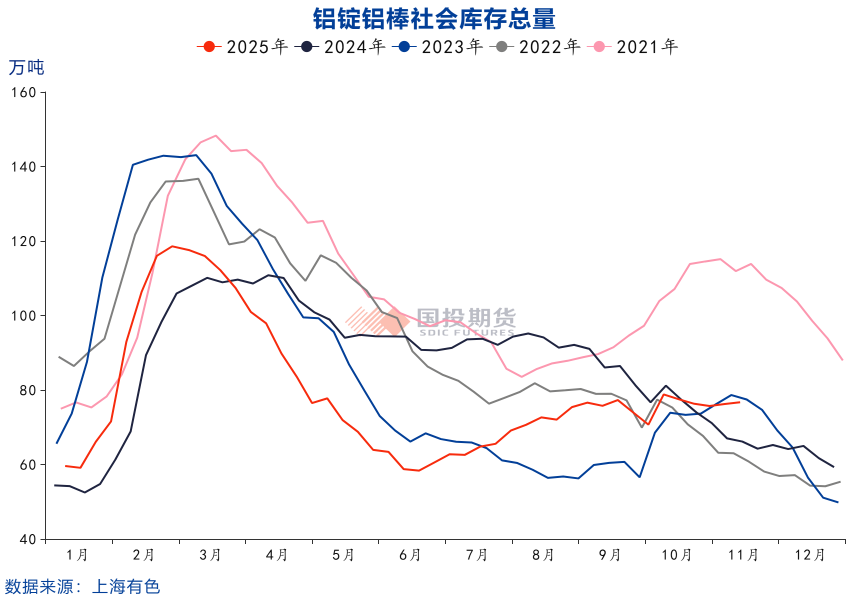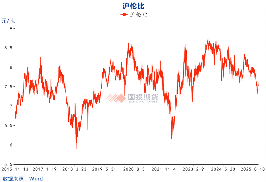 近期海外供给端存在减产扰动和电力保障担忧,10月世纪铝业冰岛铝厂二十余万吨产能因事故关停,预计需约一年才能重启,South32莫桑比克铝厂2026年3月面临电力合同到期的问题,可能造成成本上升引发减产。外盘驱动相对更强,沪伦比降至2023年低位,沪铝存在补涨的驱动。