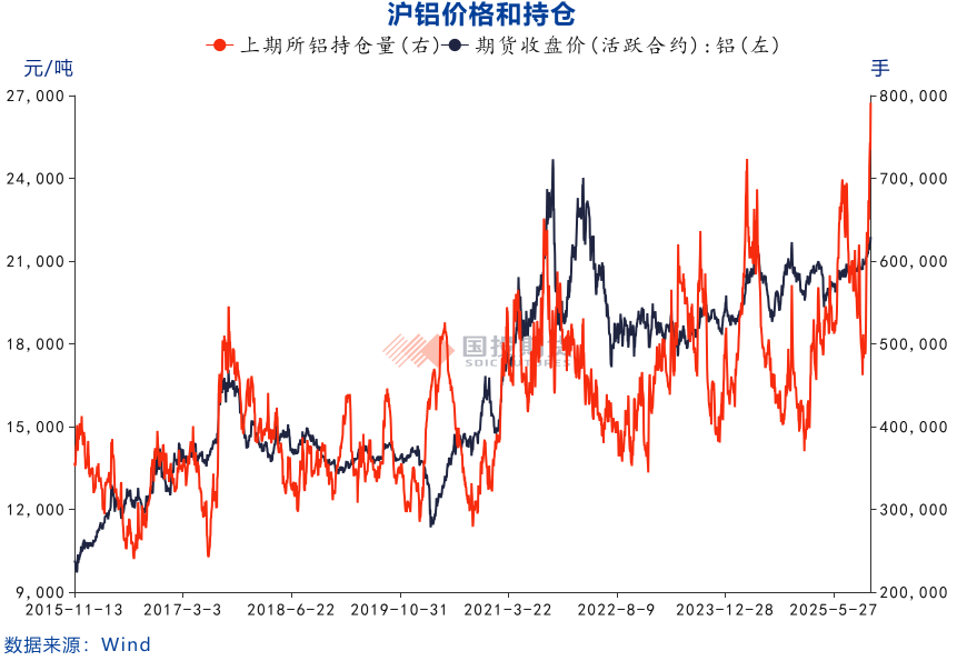 11月13日沪铝站上22000元/吨关口,高点刷新近三年新高,指数持仓高达80万手体现市场分歧加剧。