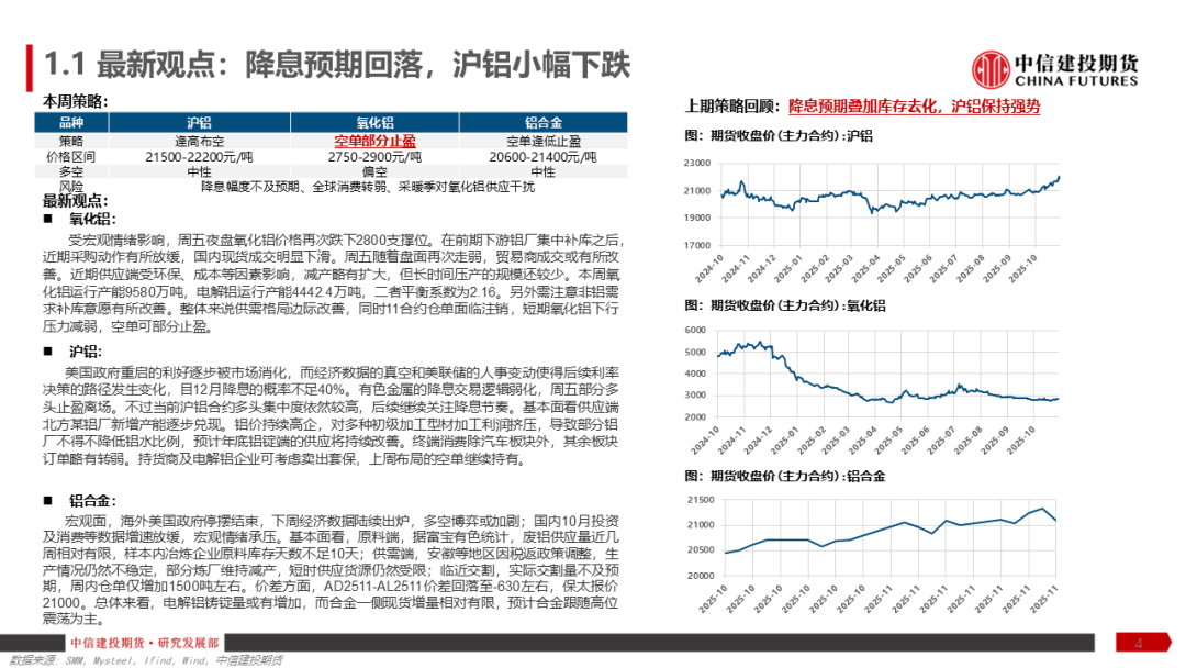 铝产业链周报 | 降息预期反复,沪铝涨幅趋缓