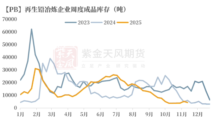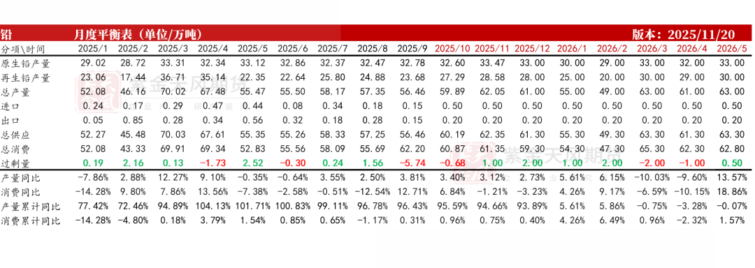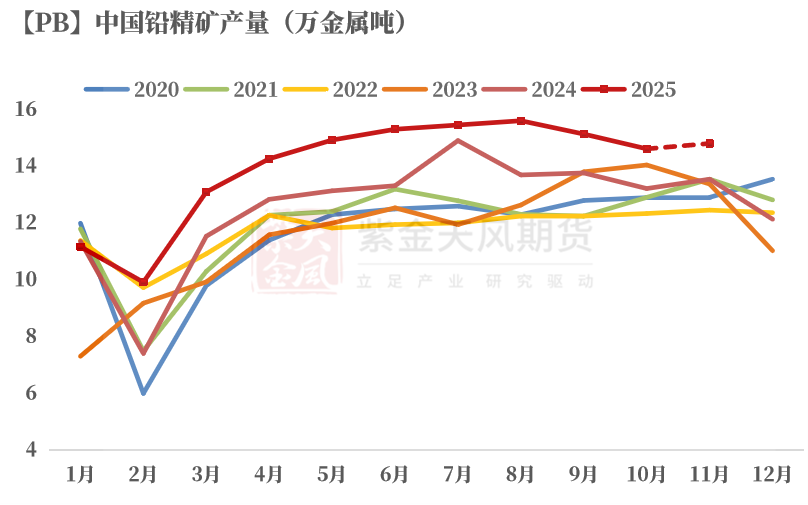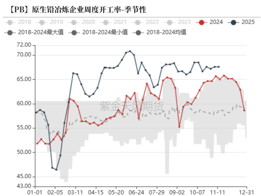 国内原生铅生产持稳高位,但12月季节性检修期,预计产量小幅下行。