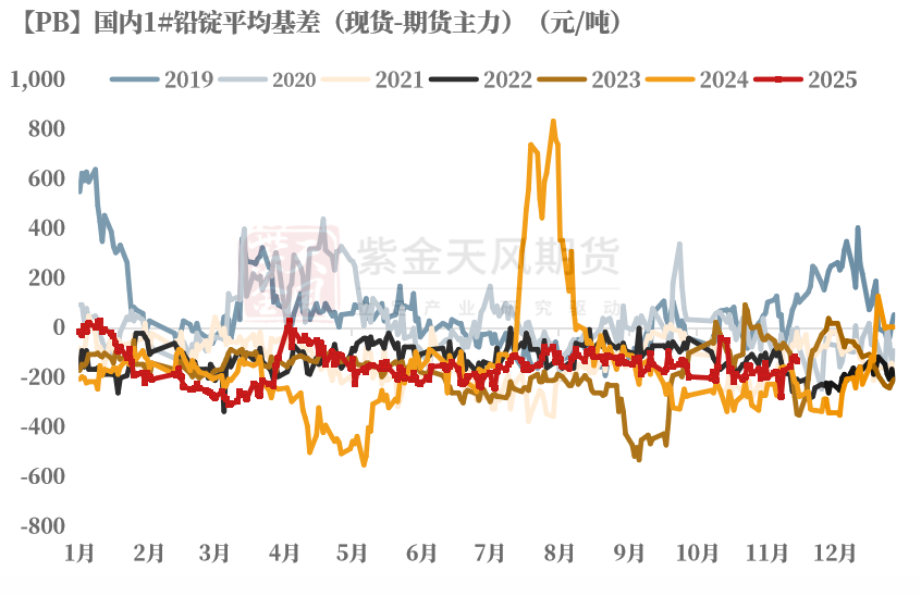 截止本周四,国内现货平均报对沪铅主力01合约贴水130元/吨,较上周收窄140元/吨。