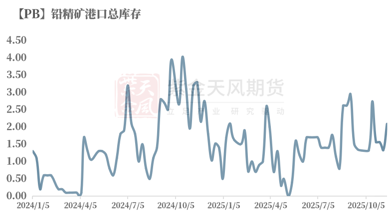 从铅精矿进口盈亏情况看,10月冬储季铅精矿进口亏损快速扩大,但同时港口库存累积,侧面反应铅精矿虽紧但不缺。预计国内炼厂高需求下,进口量仍可保持相对稳定。
