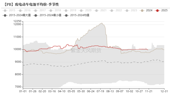 随着北方冬季来临,气温持续走低,汽车用铅酸蓄电池进入报废旺季,但华东地区部分废铅酸蓄电池回收企业反映本周电瓶报废量持续减少,整体来看废电瓶价格下跌空间仍有限。