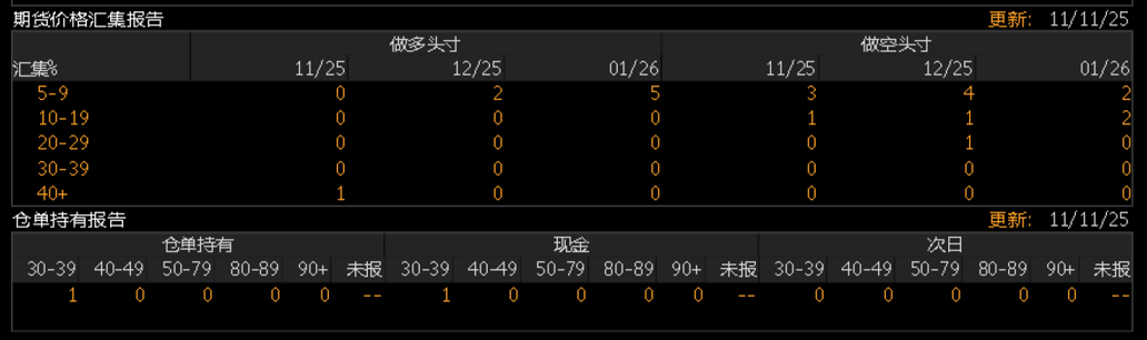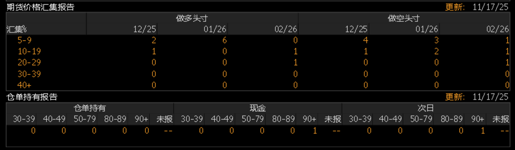 CashReport、WarrantBandingReport显示交割周Cash及Tom集中度较高,但仓单集中度暂无。