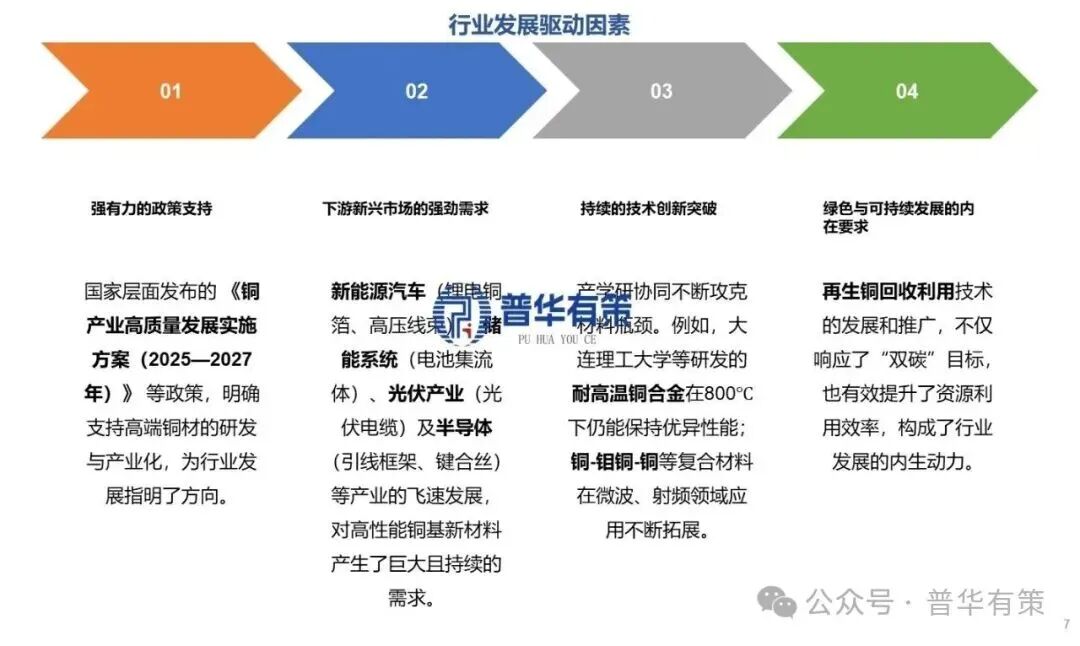 铜基新材料行业发展的核心驱动力来源于政策、需求与技术的三重共振。在政策端,国家层面连续出台的制造业升级与新材料产业扶持政策(如《中国制造2025》、《铜产业高质量发展实施方案(2025—2027年)》、新材料相关规划),为行业发展提供了明确的指引和强有力的支持。在需求端,全球能源革命与智能化浪潮催生了前所未有的市场空间,新能源汽车的渗透率提升、光伏风电的装机放量以及半导体产业的国产化突破,对高性能铜材产生了巨大且持续的刚性需求。在技术端,持续的研发投入正不断攻克材料瓶颈,产学研用协同创新机制加速了科技成果的产业化应用,为产品迭代升级提供了内生动力。