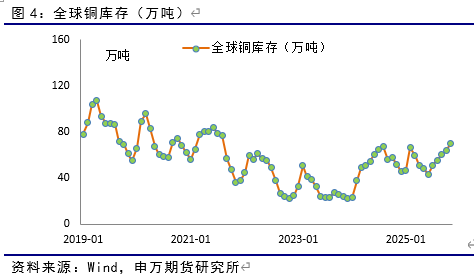 目前全球铜库存(LME+COMEX+上期所+上海保税库)为74.3万吨,持续五个月回升。此前,受美国提高铜进口关税影响,COMEX库存持续增加,最新为40.94短吨。最新的上期所库存和保税库库存分别为11.1万吨和11.2万吨,基本维持稳定。LME库存维持在15万吨左右。上海与LME现货均小幅升水。