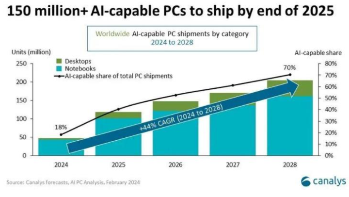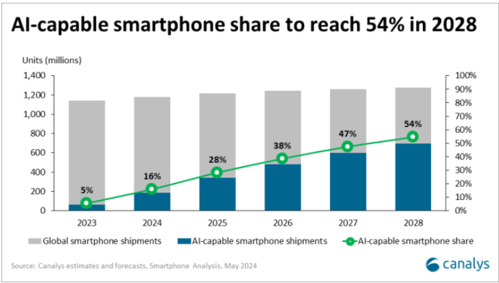 AI渗透率方面,根据Canalys数据,2024年全球AI手机、AI PC渗透率分别为16%、18%,Canalys预测2028年全球AI手机、AI PC渗透率分别有望提升至54%、70%。相较于普通智能手机或普通PC,搭载专用AI芯片组或模块以运行端侧AI工作负载的智能手机或PC的芯片集成度更高、封装密度大,从而提升单台设备锡需求量。
