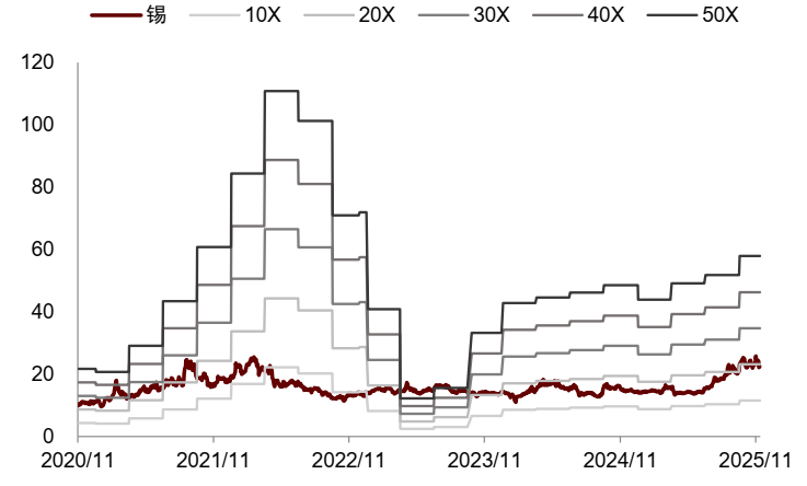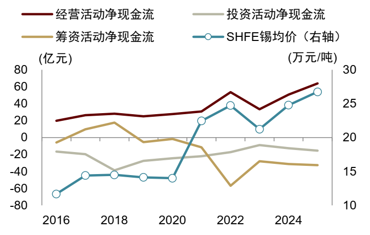 注:锡行业选取锡业股份,兴业银锡,华锡有色,2025E现金流为前三季度年化,2025E价格为2025年初至今SHFE锡均价