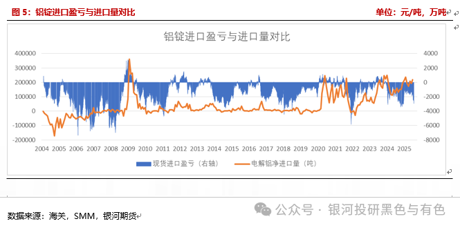 因为海外地缘因素,铝锭存在不考虑内外价差的进口量,所以近两年国内铝需求的缺口被进口量覆盖、但内外价差却仍是亏损表现。而2026年除了这一部分铝锭进口量预计维持之外,还会有一部分印尼新投铝锭回流国内,预计铝锭维持理论进口亏损,而这一情况或在2027年因国内供应增速骤降而得到改变。