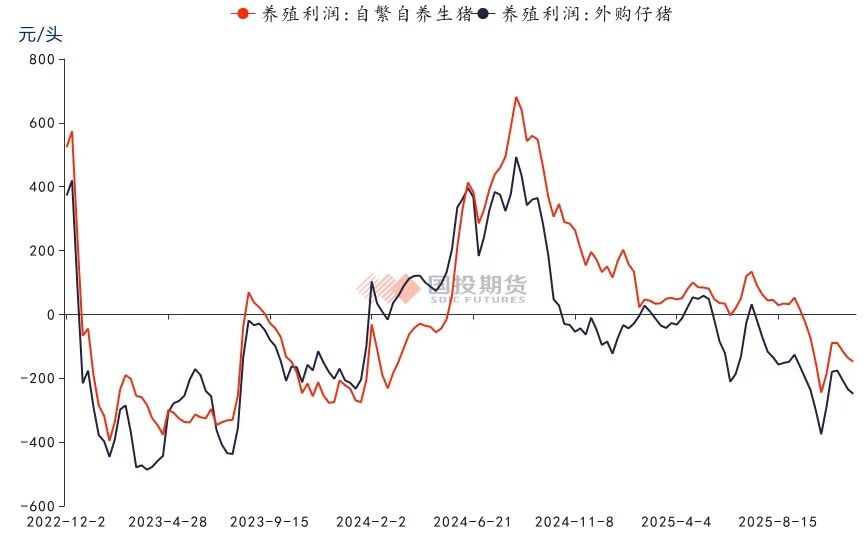 对于生猪中长期仍须看到政策在调控产能方面发力,毕竟随着生猪价格下跌而饲料原料上涨,养殖利润表现不佳(图8),这为调控产能提供契机。11月份饲料原料中的豆粕和玉米均有一定涨幅,特别是玉米期货盘面月涨幅高达5.4%左右。目前北港玉米现货价格继续保持坚挺,东北农户惜售情绪强烈,新粮供应低于预期。因天气因素华北玉米质量偏差,市场更加青睐东北优质粮,导致市场对目前和未来一段时间东北粮供应和东北运力引发担忧,整体上供需错配依旧。换而言之,气象因素在玉米供应端产生一定扰动。从盘面来看,大豆和玉米底部可能已显现,但未来的往上的高度可能还是取决于气象因素对供应端到底会产生哪种级别的扰动,这个可能需要后期做进一步观察。
