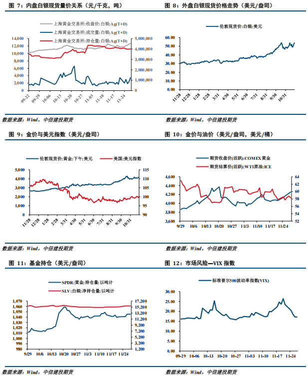 地缘政治方面,俄乌和谈进程牵动市场风险预期,美国或对委内瑞拉采取军事行动。美国牵头起草且修正“28 点和平计划”,准备派出特使前往莫斯科促成俄乌停战,欧盟也对该和平计划发表意见力促和谈,如欧盟委员会主席冯德莱恩提出利用俄冻结资产援乌重建。但乌克兰方面对于该“和平计划”造成的领土损失以及宪法修改等后果表示反对态度,叠加俄罗斯拒不让步与继续打击乌克兰能源设施的强硬态度,市场风险下降相对有限。此外,近期美国以“缉毒”为由,在委内瑞拉附近加勒比海域部署多艘军舰,对委施压美国,总统特朗普还称委内瑞拉上空及周边空域“被视为全面关闭”,地缘风险依然存在,因此贵金属仍有支撑。