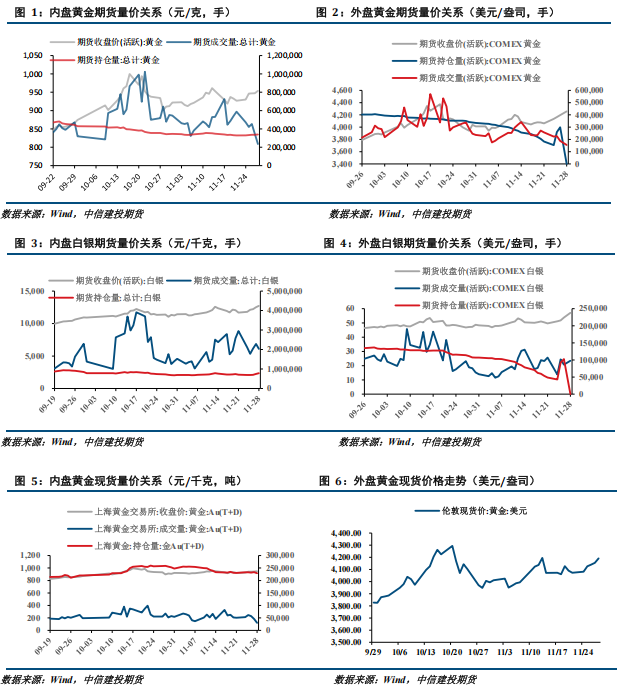 总体来看,上周美国 12 月降息预期进一步升温,叠加俄乌和谈结果未定以及委内瑞拉地缘风险上升,共同推动上周贵金属强势表现。但回调幅度有限。