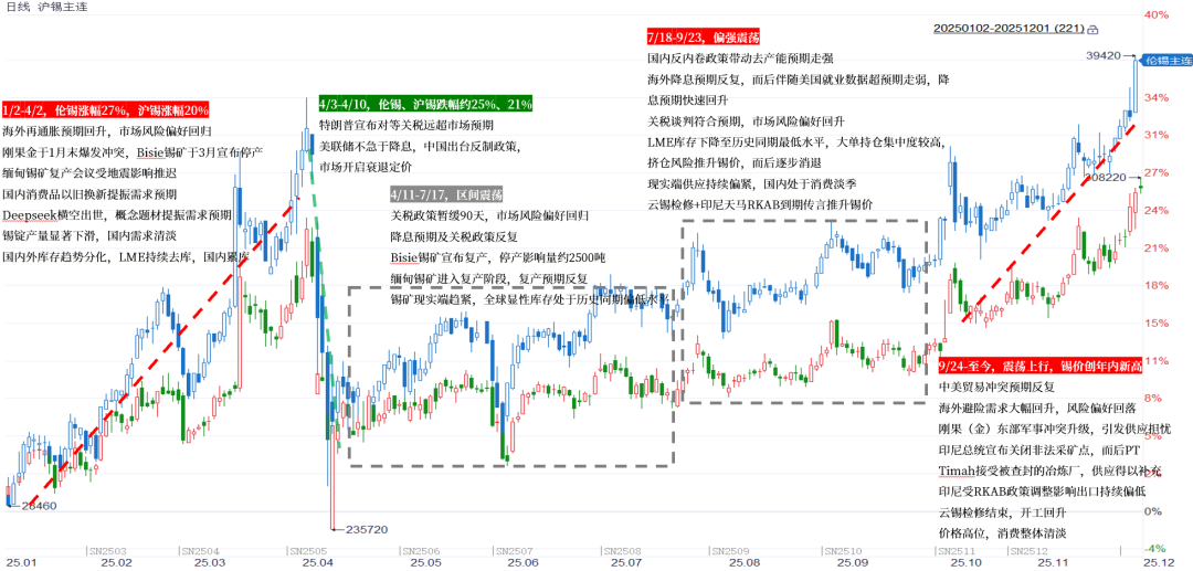 宏观层面降息预期反复下,基本面潜在的供应扰动引发市场担忧,内外盘持仓量快速上升,带动锡价创下年内新高。