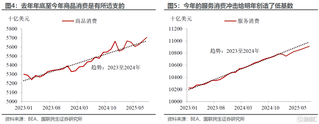 我们认为,消费决定美国经济的周期性波动和节奏,AI等制造业投资决定经济的弹性。2026年整体消费或进一步改善,核心原因在于减税的生效、关税部分退坡、以及特朗普在政策上更加注重民生。结构上,因为2025年政策冲击的影响,比如关税导致耐用品的提前消费和透支,我们认为,商品消费增速可能放缓,服务消费则会加速。