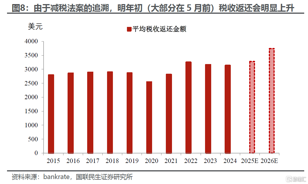明年美国消费将呈现怎样的波动节奏?从节奏上看,我们认为可能是前低后高。上半年消费有望寻底企稳:税收返还和可能的“发钱”对冲冲高的通胀,以及今年年末就业和情绪冲击的余波。下半年在货币继续宽松(预期)和通胀回落的影响下,消费可能延续改善。