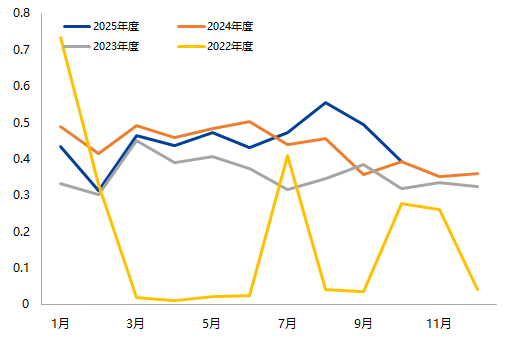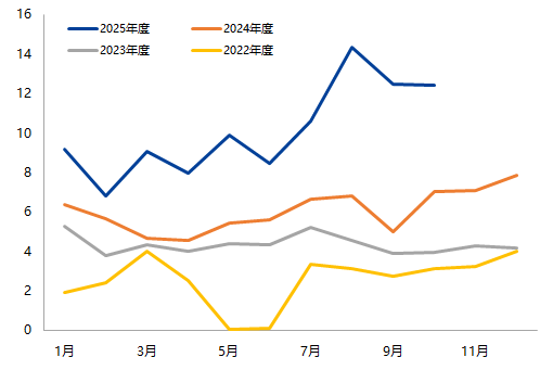对比往年截至10月的同比增长情况看: