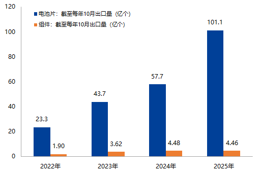2025年出口增速出现分化,截至10月我国向全球出口电池片同比增长75.2%,向全球出口光伏组件同比增长-0.5%,这与往年情况有较大差异,可能反映海外组装能力提升或库存调整。