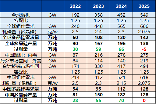 图表10:2022-2025年多晶硅供需平衡调整