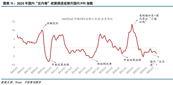伴随着国内“反内卷”政策继续推进,2026年重点行业价格回升概率较大。目前国内下游需求不足问题有待解决,需要关注“反内卷”政策对价格拉动是否能向全产业链顺畅传导,国内定价品种要实现持续大幅反弹还需供需两端发力。