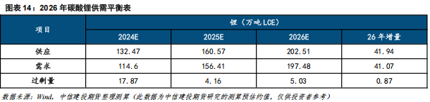 碳酸锂:2026年碳酸锂过剩量呈现减小,供给侧和需求侧的扰动对盘面影响会进一步放大,注意把握做多节奏。