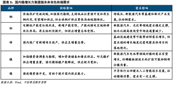 此外,“智能化、绿色化”政策会推动新能源汽车、光伏、特高压等领域高速发展,有色金属长期需求空间打开。