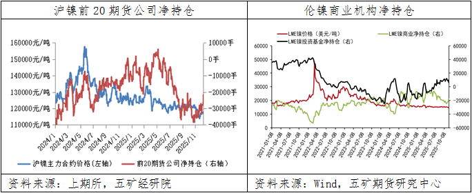 国内主力收缩空头敞口规模,国际金融资本和产业资本多空对减。11月28日,沪镍持仓量前20期货公司持有净空头26925手,较上月空头敞口收缩11215手,12月上旬进一步收缩空头敞口至21430手;伦镍商业机构持有净空头17651手,较上月同期空头敞口收窄6373手;投资基金持有净多头6305手,较上月同期多头敞口收窄4960手。