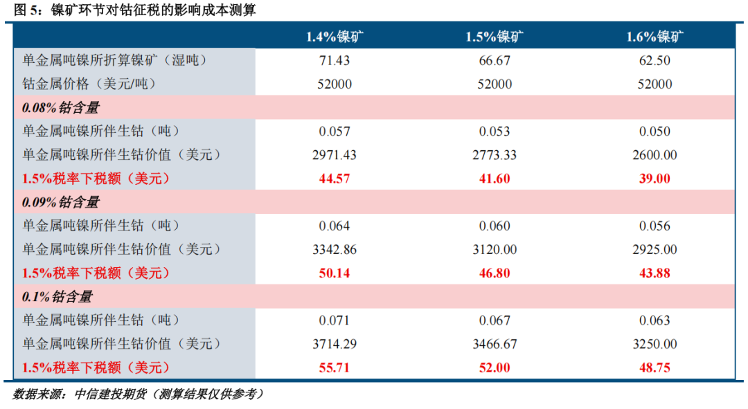 三、钴价值量高,但伴生含量低,预计征税影响有限