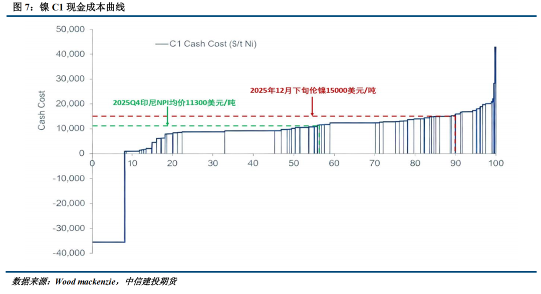 从价格走势看,本轮镍价已反弹至15000美元/吨附近,位于成本曲线的90分位处,接近中国镍铁C1现金成本。但目前定性看,国内不锈钢市场表现仍旧疲软,需求支撑乏力或难给到铁厂足够利润,因此我们判断短期内,若无基本面需求的有效支撑,那么镍价持续上行的动能或相对有限。展望2026年,我们依然看好MHP的大规模放量,相应地电积镍产能释放或将继续带来供需压力。虽然25Q4期间印尼镍铁价格高于C1成本,但在考虑资本开支的情况下,目前印尼镍铁项目亦基本亏损,短期印尼镍铁价格触底,不锈钢成本支撑在2026年有望迎来修复。