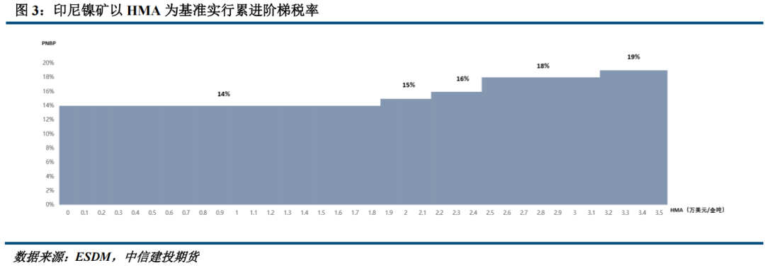 相比较而言,我们认为对伴生品征税的政策落地概率,要远大于RKAB配额削减。一方面,从今年的政策执行情况来看,前期印尼政府对配额态度更偏鹰派,但后期则通过补充配额的形式逐步放松对矿端供应的收紧,而在修改HMA和征收PNBP等价格政策方面,执行力度较为坚决。另一方面,印尼新版PNBP实行累进税率制度,如果HMA价格不足以拉开充分的阶梯税率差异,更多的开采配额反而更有利于扩大国家总体财政收入,而这也是我们推测今年RKAB配额超预期增加的原因。