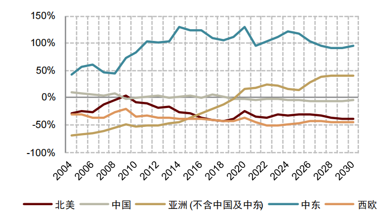 注:正数代表供大于求或净出口,负数代表供小于求或净进口