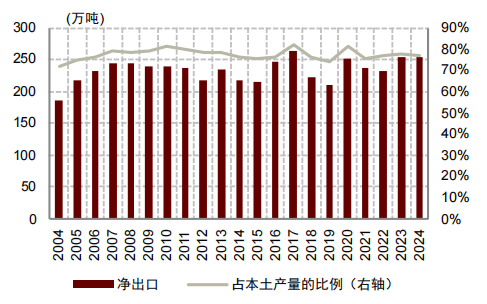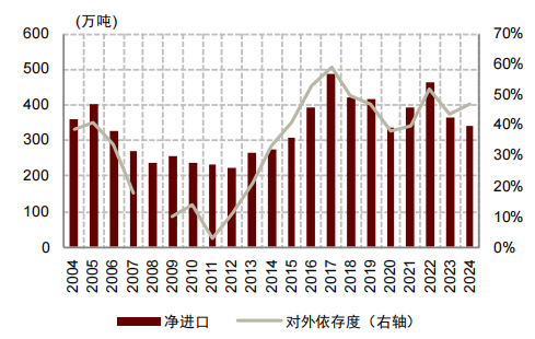 注:对外依存度为净进口库存调整后与表观消费量之比